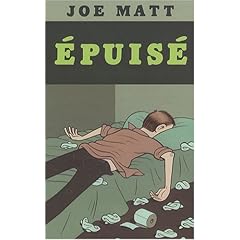 J'ai découvert l'univers de Joe Matt avec son premier album Peep-Show paru en 2001. Il est de retour avec un nouvel opus au titre éloquent : Épuisé. Étalé sur son lit, le corps enfoncé de dos dans un matelas, notre héros git comme une loque au milieu de mouchoirs en papier froissés. L'aventure commence. J'avais craint que ce genre de récits dessinés nourris à l'autobiographie et aux expériences personnelles de devienne aussi lassant que ce qu'ils sont trop souvent au cinéma (...)