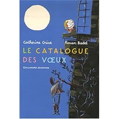 Un livre à lire dans les deux sens, un côté "catalogue de voeux", l'autre "catalogue des occasions de faire un voeux". A chaque page on trouve une phrase et son illustration. C'est un titre qui fait rêver et qu'on a envie de regarder, cependant il n'est pas complètement à la hauteur de ses promesses (...)